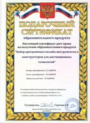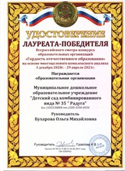 По итогам были отобраны 700 лучших образовательных организаций России. Среди таких оказался детский сад комбинированного вида № 35 «Радуга» города Саянска. Удостоверение лауреата-победителя всероссийского конкурса было вручено заведующей Ольге Бухаровой на педагогической ассамблее работников образования, а на днях набор программных онлайн-инструментов и конструкторов для дистанционных технологий.