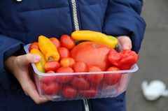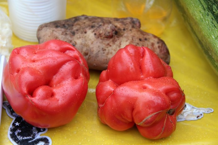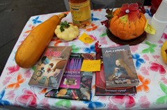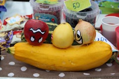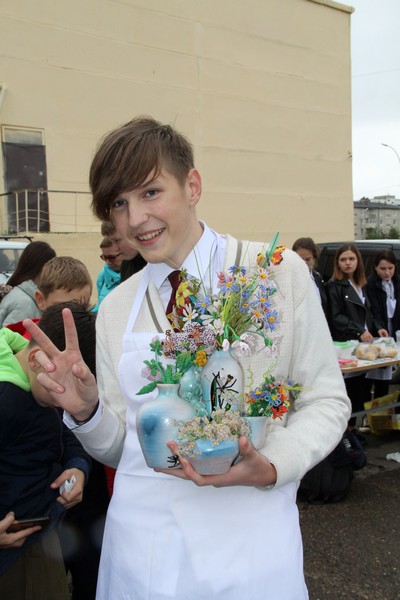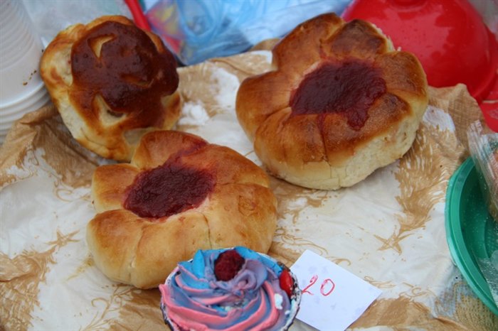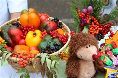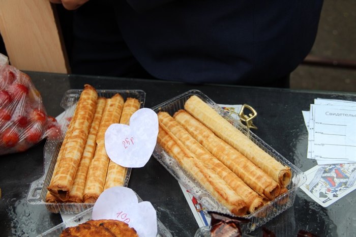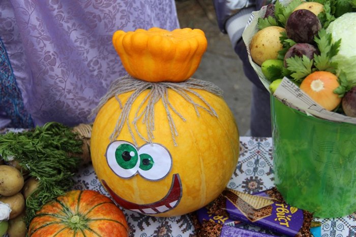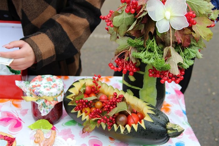 Детвора, родители школьников и педагоги стремились перещеголять другу друга в разнообразии своих товаров. Шедевр местного автопрома − «внедорожник для Золушки» из тыквы, вырезанная из арбуза дивной красоты ягода, фантастической формы и размера овощи – от карликовых до гигантских. Выпечка на любой вкус – ажурные блинчики с мясом и кедровыми орешками, вафельные трубочки со сгущенкой, печенье и пицца, румяные булочки и ватрушки – все домашнего приготовления. Веселые овощные семейки, яблочки моченые и в карамели, картошечка желтенькая и фиолетовая, соленье и варенье – любой товар на загляденье.