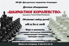 Дом детского творчества "Созвездие" приглашает детей в объединение "Шахматное королевство".