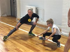 Вторая половина состязаний прошла в здании городского стадиона. Здесь команды бегали, метали теннисный мяч в цель, отжимались и подтягивалась на перекладине.