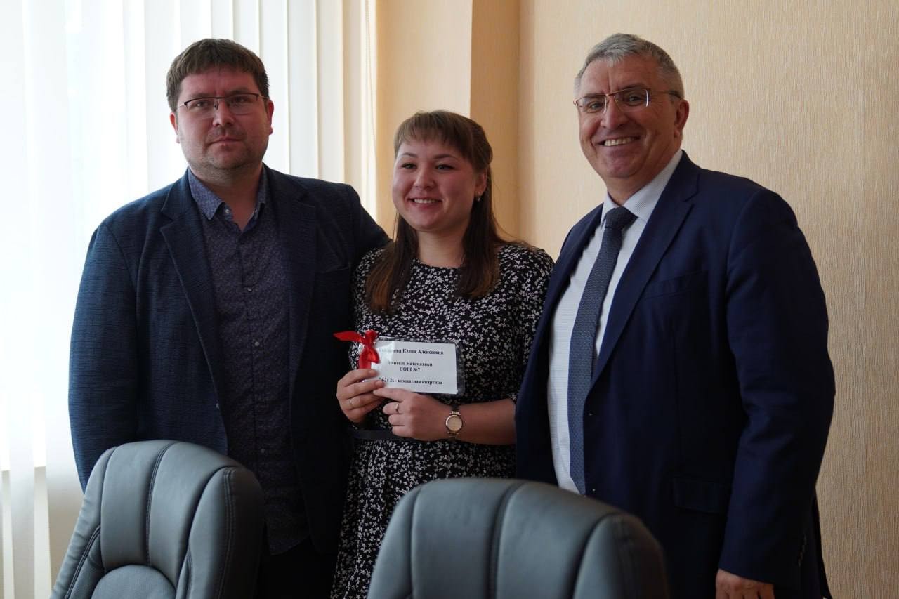 Рабочая неделя в администрации города началась с радостного события: исполняющий обязанности мэра Александр Ермаков вручил ключи от четырех квартир педагогам Саянска.