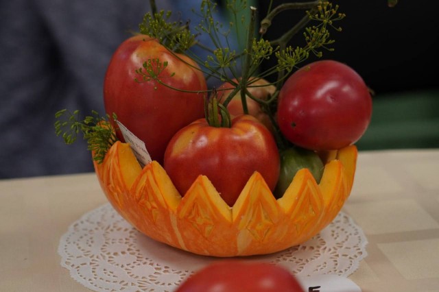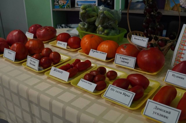 Столы ломились от обилия томатов разных сортов и цветов. Здесь можно было увидеть как помидоры-гиганты, так и маленькие черри. Некоторые участники делились проверенными рецептами заготовок из этого овоща и даже проводили их дегустацию.