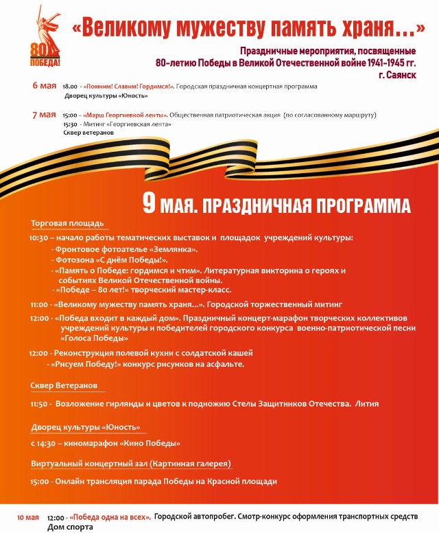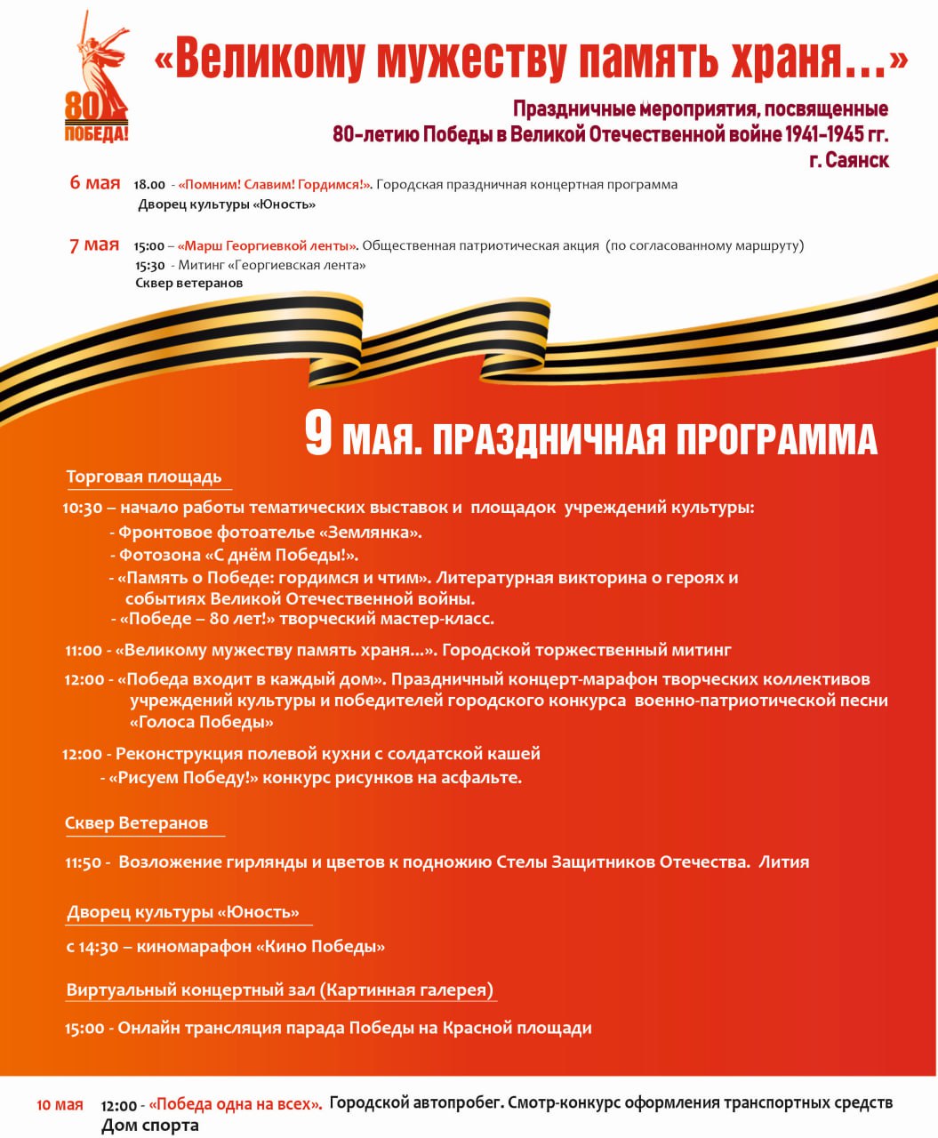 Афиша праздничных мероприятий, посвященных 80-летию Победы в Великой Отечественной войне 1941-1945 гг.