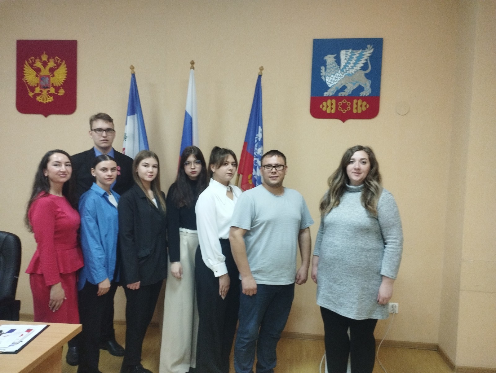 На заседании присутствовали члены Молодежного парламента г. Саянск: Васильева Арина Дмитриевна, Емельянова Диана Алексеевна, Кирсанова Владлена Викторовна, Стерликова Александра Андреевна. А также кандидаты в Молодежный парламент: Шевелев Павел Вячеславович, Шмидт Алексей Борисович, Несветова Евгения Михайловна.