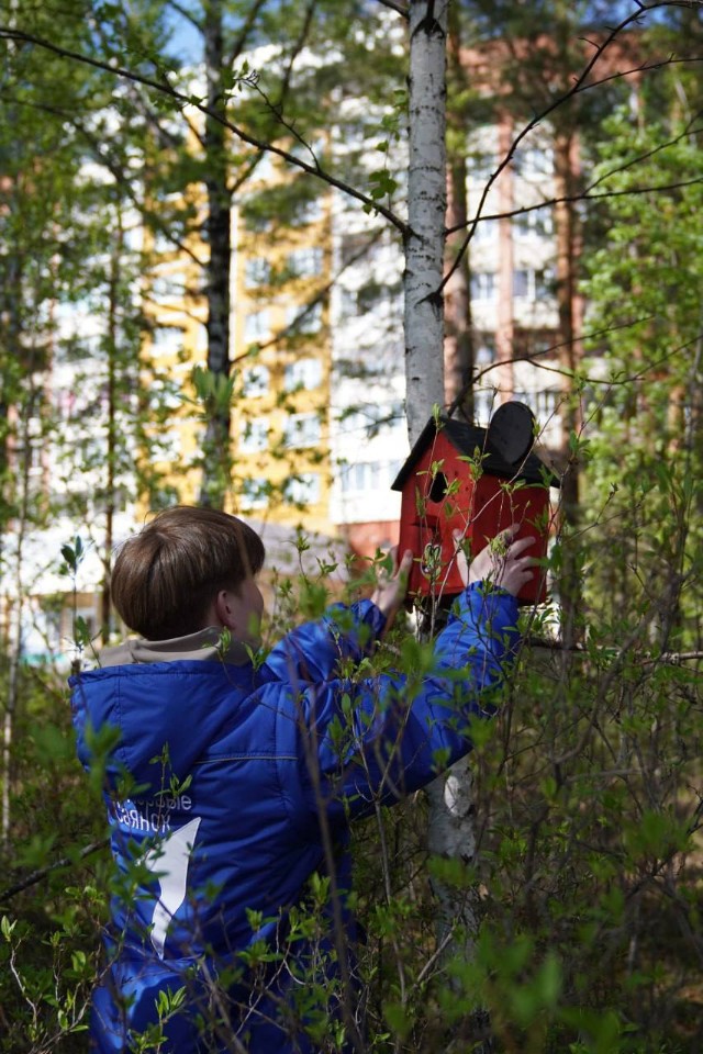 В конце мероприятия «Первые» смогли совершить доброе дело: установить кормушки для птиц, сделанные своими руками, на небольшом лесном пяточке рядом с горкой.