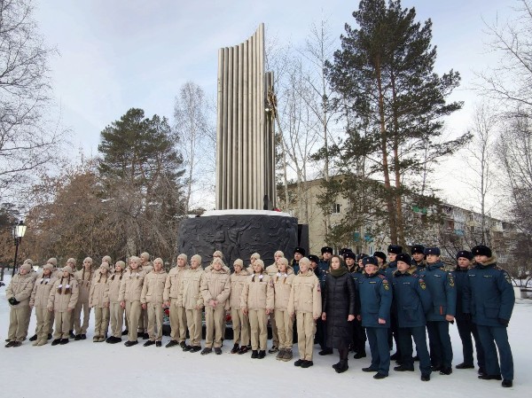 В сквере Ветеранов собрались сотрудники и ветераны МЧС России, юнармейцы.