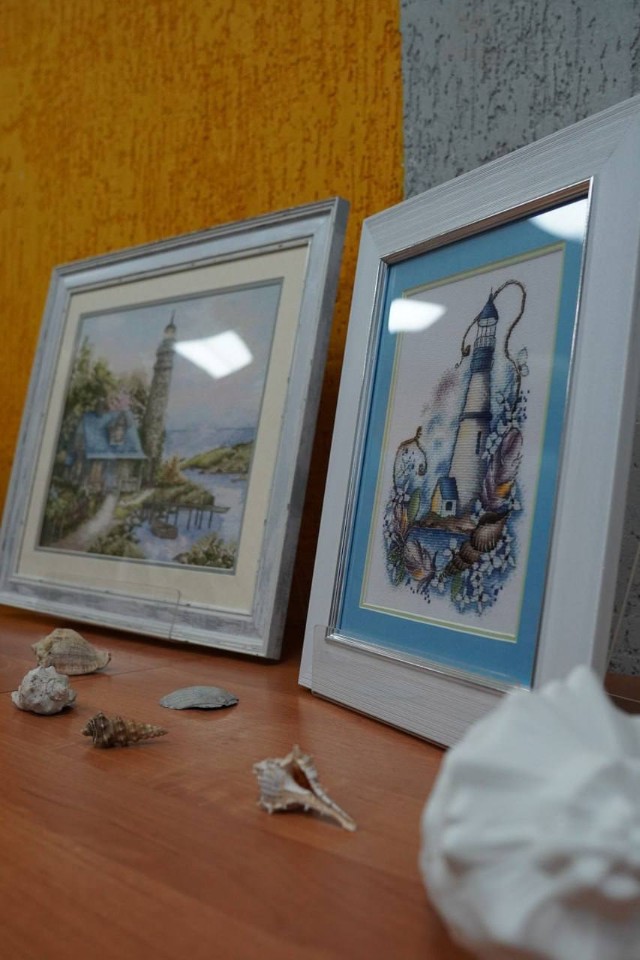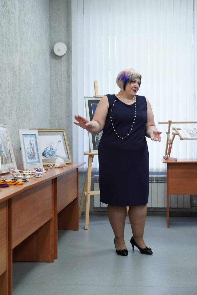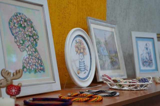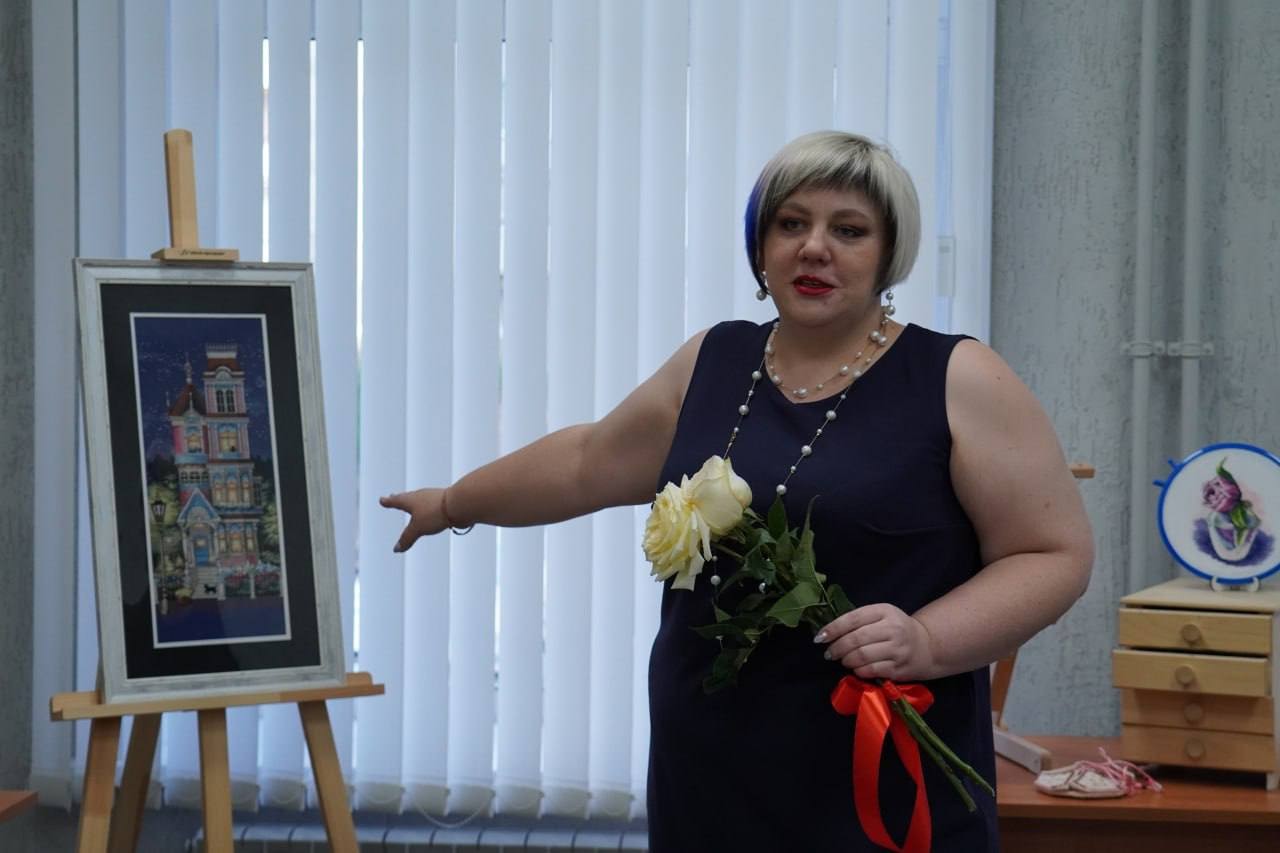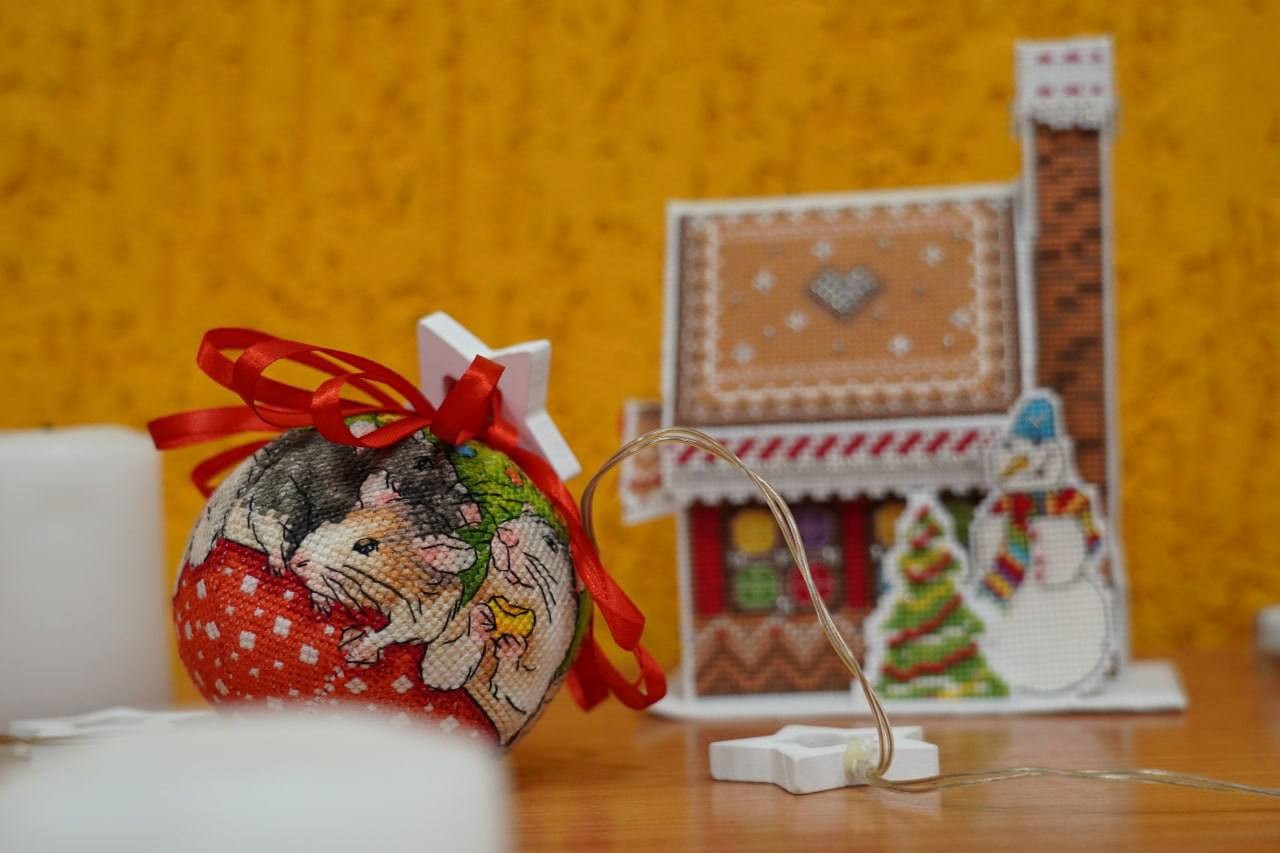 Новогодние игрушки, картины и декоративные элементы, вышитые крестиком, представила на открытии персональной выставки Кристина Белькова.