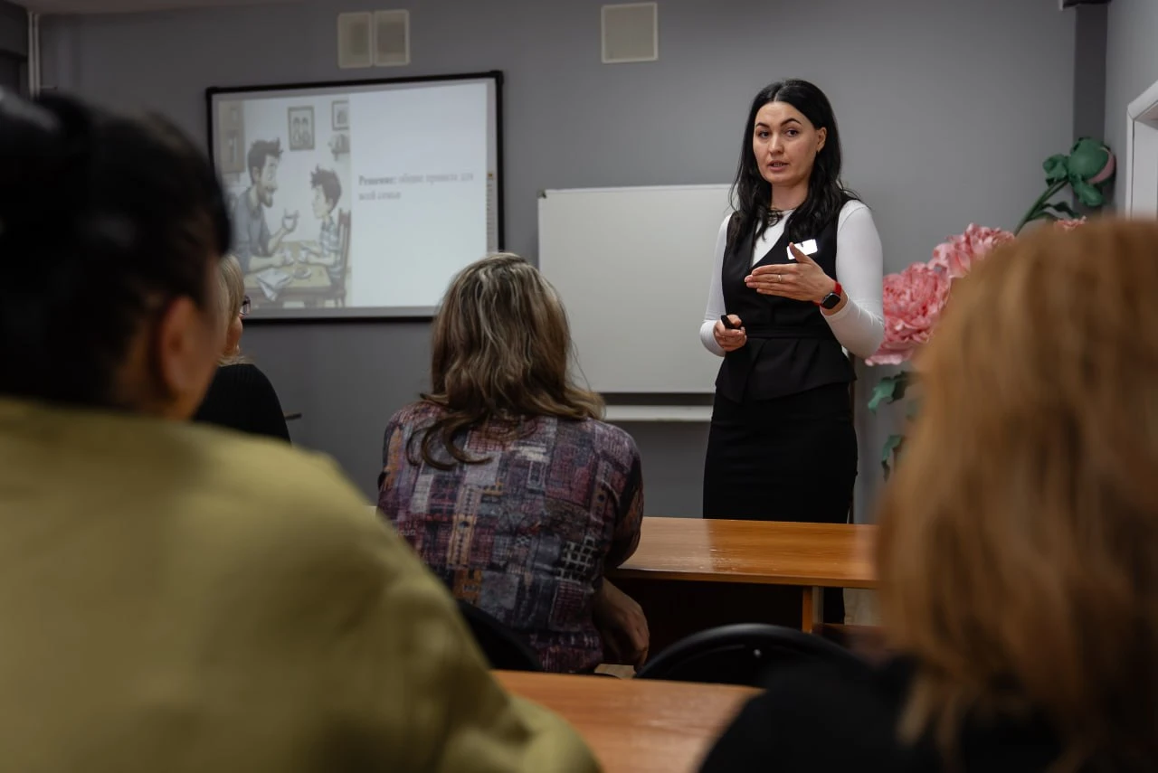 Задачей учителей было провести для мам и отцов детей просветительское мероприятие, посвященное разным аспектам воспитания. Одной из главных тем всех выступлений стало взаимодействие и взаимопонимание поколений внутри семьи.