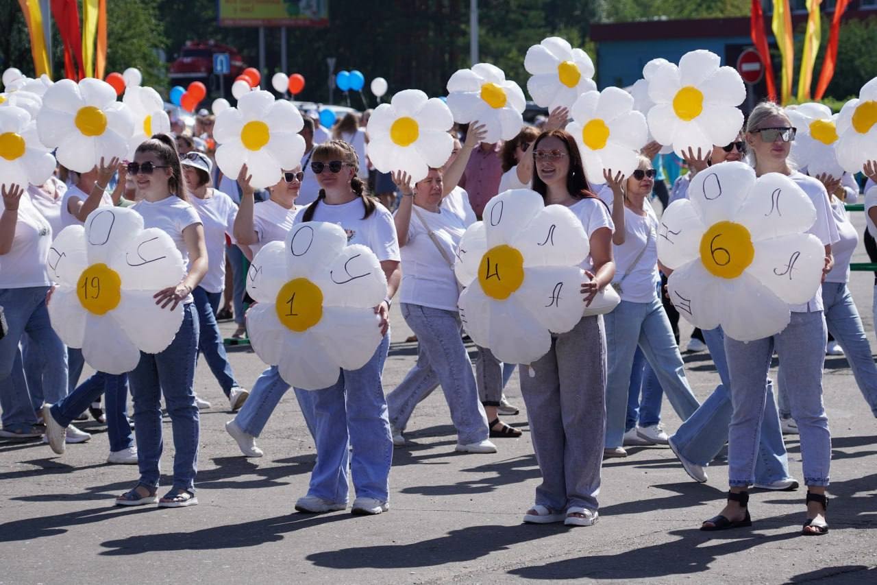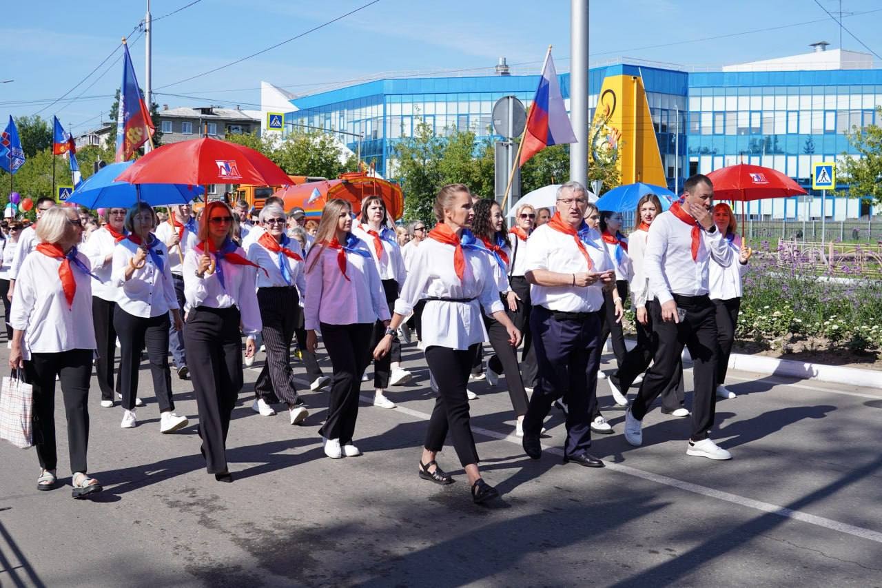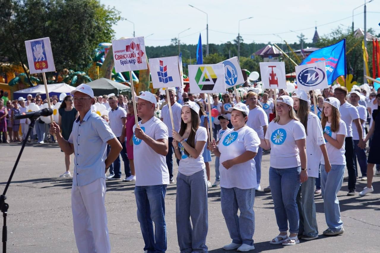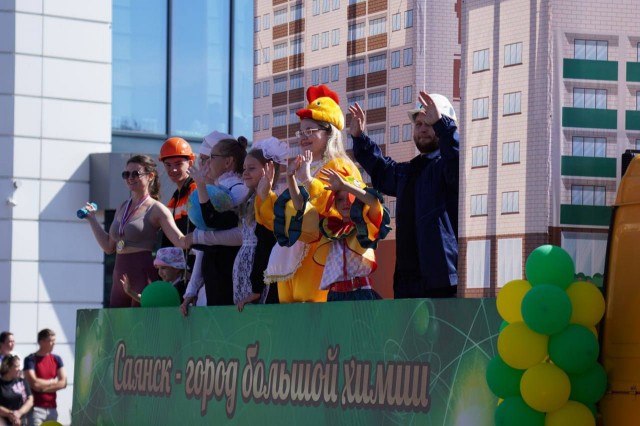 Возглавляла шествие команда администрации города под руководством исполняющего обязанности мэра Александра Ермаков. Вслед за чиновниками шли трудовые коллективы «Восток-Центра», «Саянскхимпласта», «Саянского бройлера», работники сфер образования и спорта, специалисты предприятий жизнеобеспечения и участники общественных организаций.