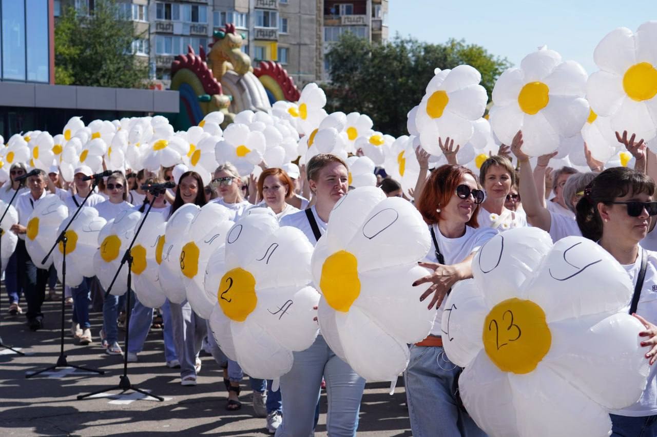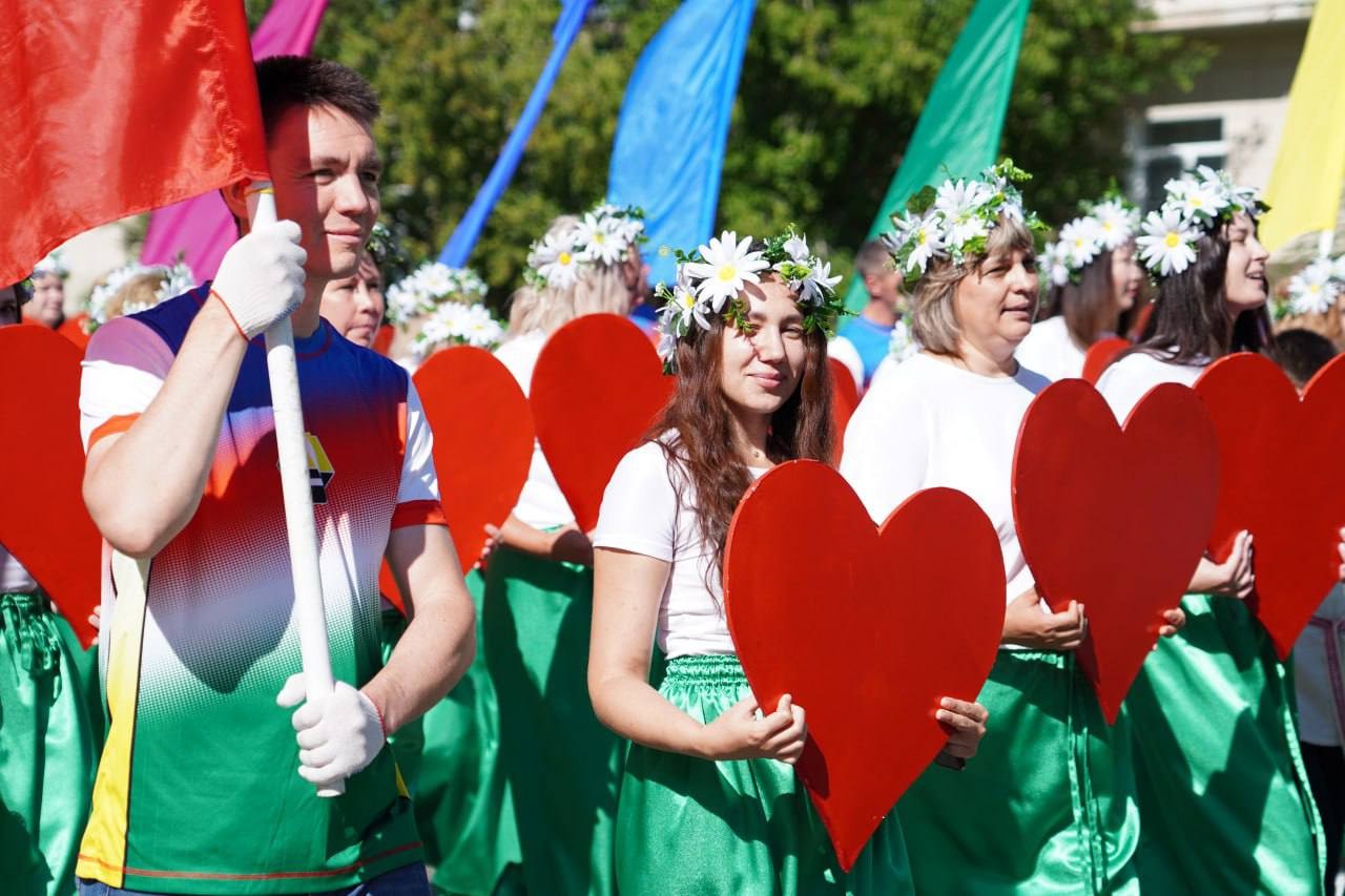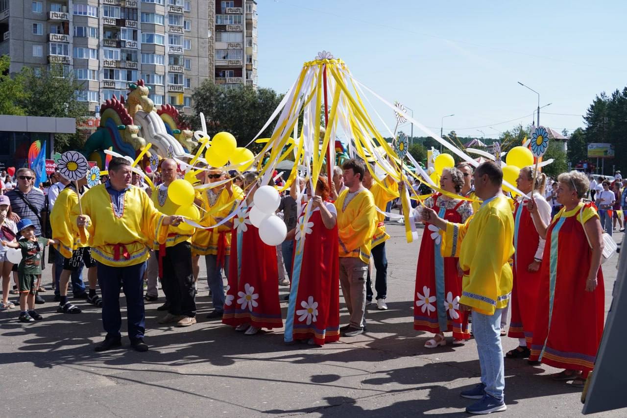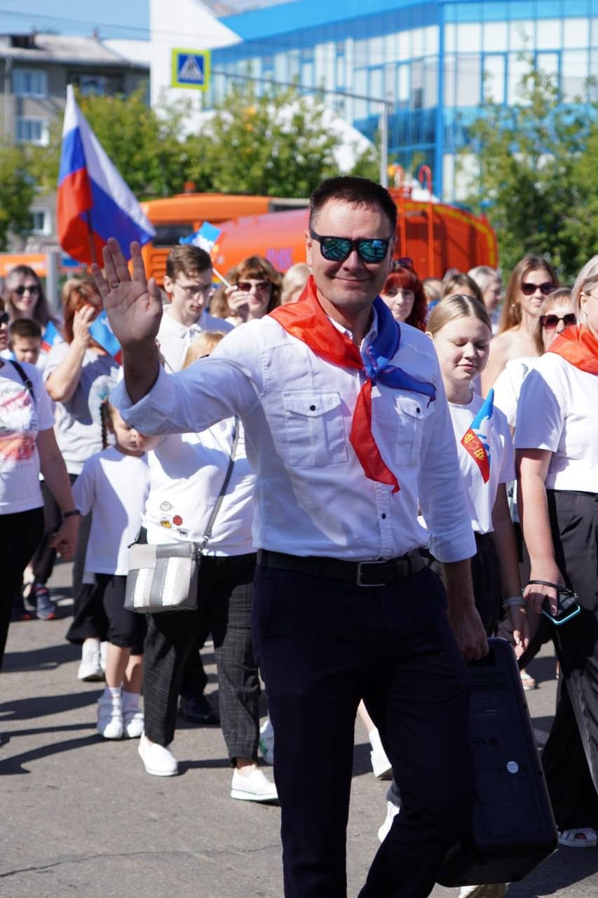 Возглавляла шествие команда администрации города под руководством исполняющего обязанности мэра Александра Ермаков. Вслед за чиновниками шли трудовые коллективы «Восток-Центра», «Саянскхимпласта», «Саянского бройлера», работники сфер образования и спорта, специалисты предприятий жизнеобеспечения и участники общественных организаций.