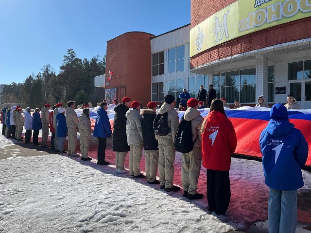 В мероприятии приняли участие более 70 волонтеров Движения Первых и юнармейцев. В знак единства и патриотизма ребята развернули российский флаг размером более 90 м², символизирующий крепкую связь между регионами и всей страной.
