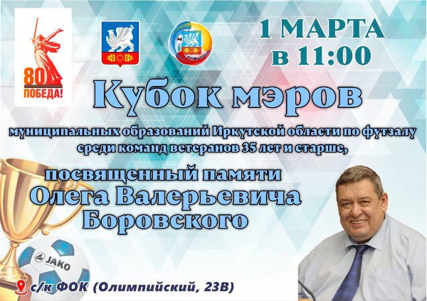 КУБОК МЭРОВ муниципальных образований Иркутской области по футзалу среди команд ветеранов 35 лет и старше, посвященный памяти Олега Валерьевича Боровского.