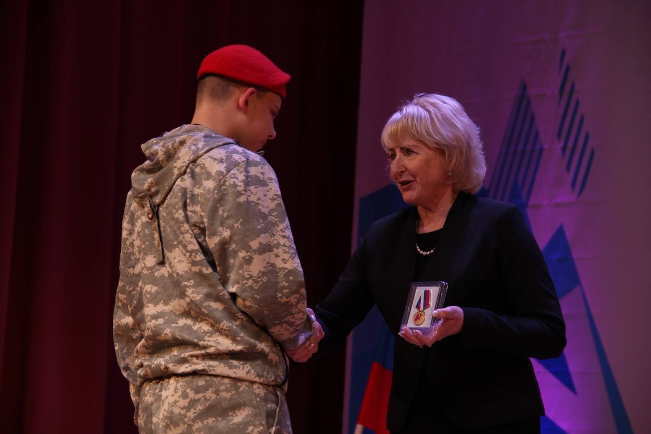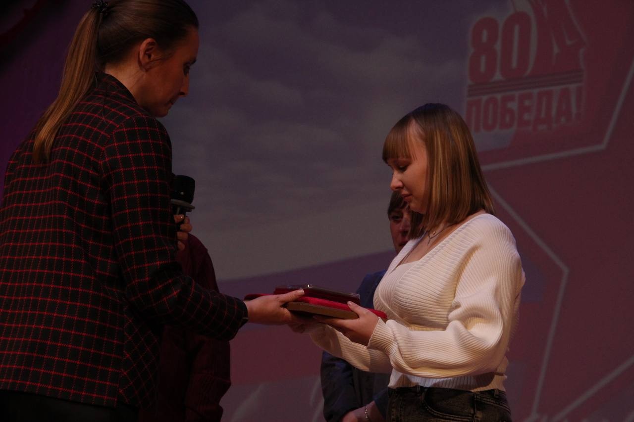 Открыл мероприятие парад юнармейцев. Ветерану Великой Отечественной войны и труженику тыла Геннадию Сухвалову исполняющая обязанности мэра Мария Данилова вручила юбилейную медаль «80-летие Победы в Великой Отечественной войне». Кроме того, Мария Фёдоровна передала посмертную государственную награду Российской Федерации, орден Мужества, семье Сергея Камаева, который доблестно выполнял военный долг в зоне специальной военной операции.