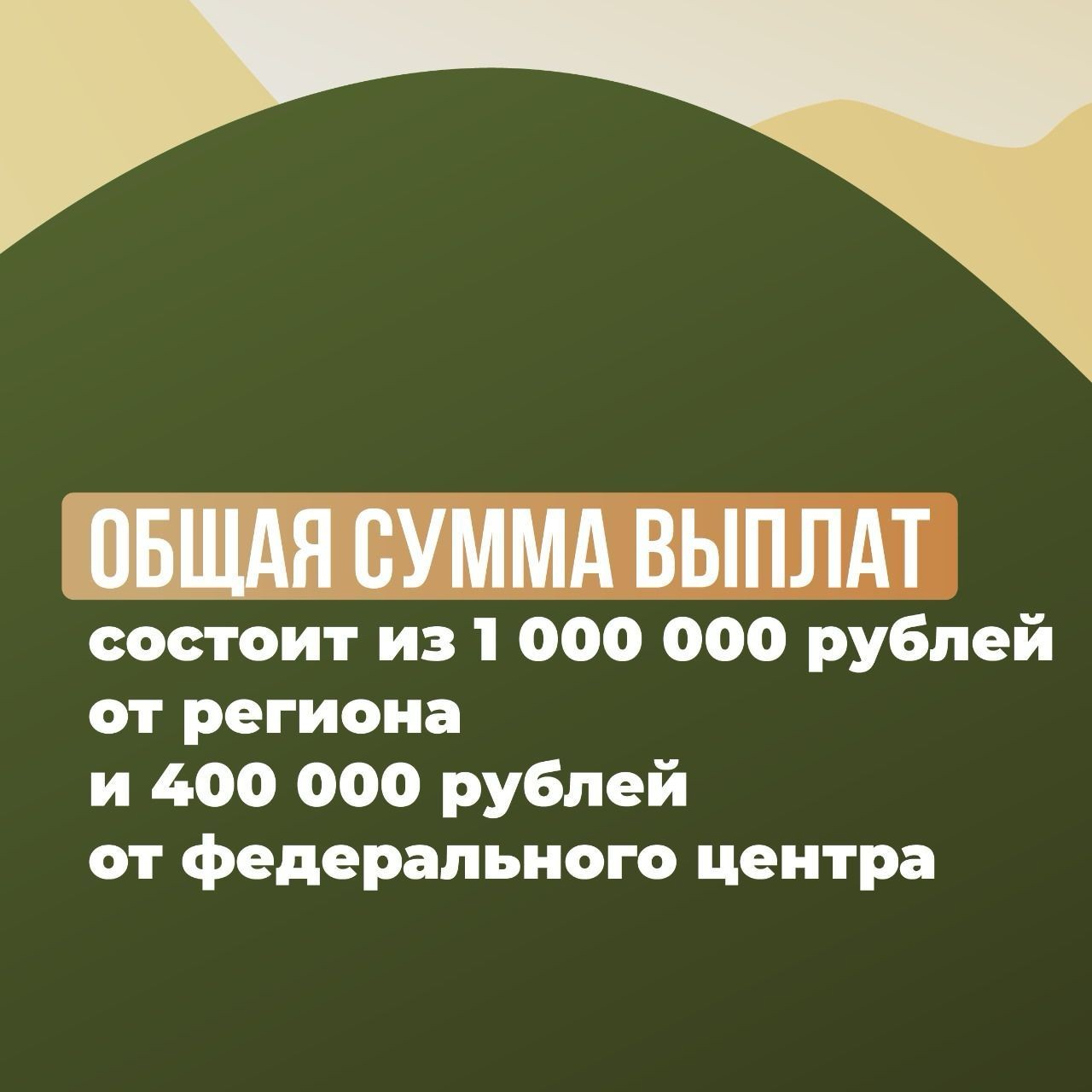- единовременная федеральная выплата 400 000 рублей