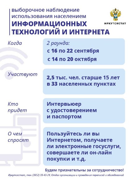 Иркутскстат проводит обследование населения об использовании информационных технологий и интернета