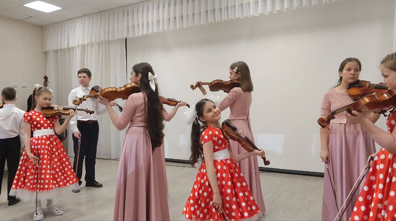 На юбилейном концерте в исполнении юных скрипачей прозвучали произведения известных композиторов.