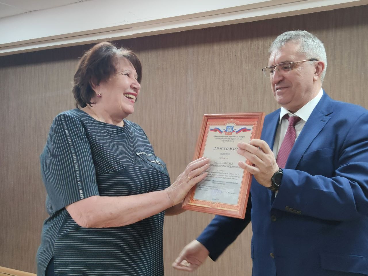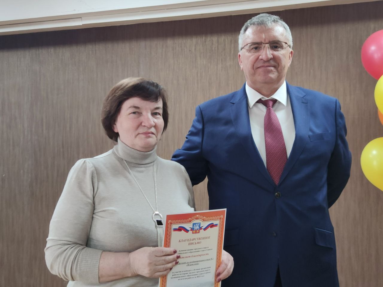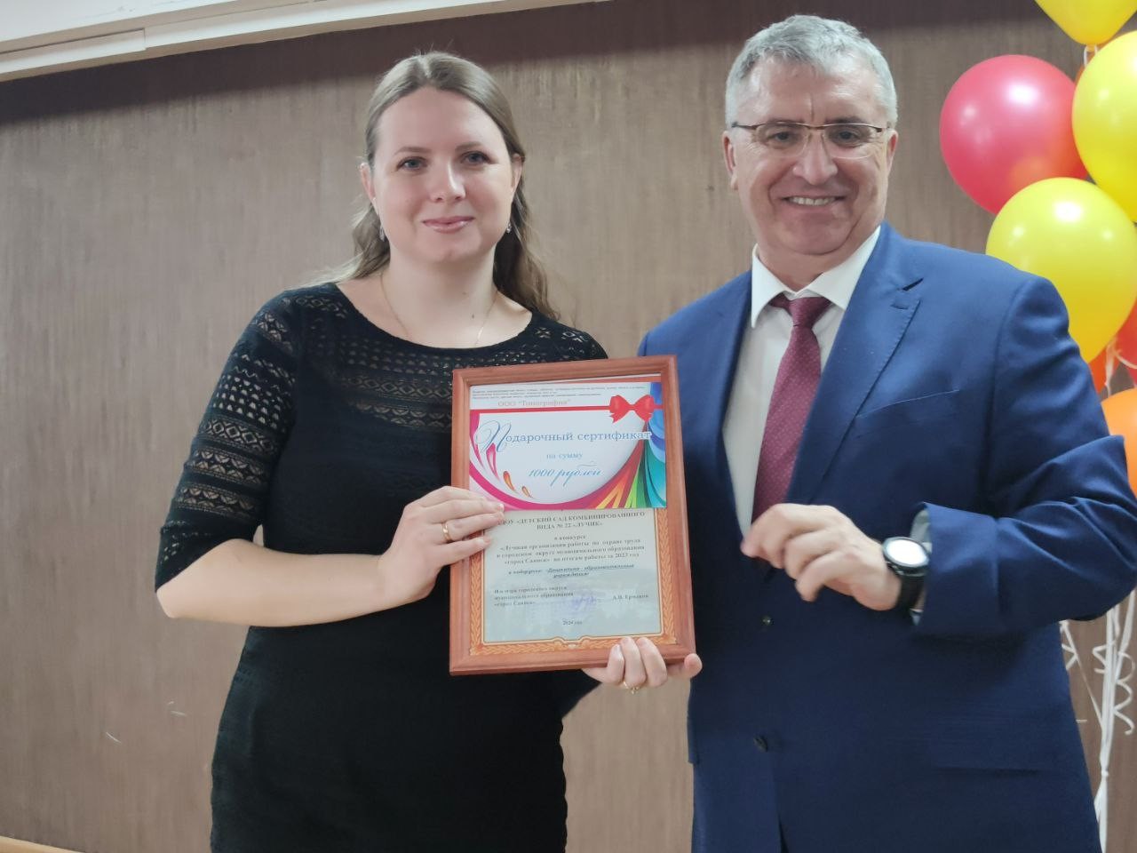 В преддверии Всемирного дня Охраны труда «Безопасный труд - счастливое будущее!» и.о. мэра городского округа Ермаков Александр Владимирович вручил благодарность от Министра труда и занятости Иркутской области Кирилла Клокова за добросовестный труд и профессиональные успехи в сфере труда и занятости населения на территории Иркутской области, коллеге, консультанту по управлению охраной труда администрации города Саянска Тукаленко Татьяне Григорьевне.