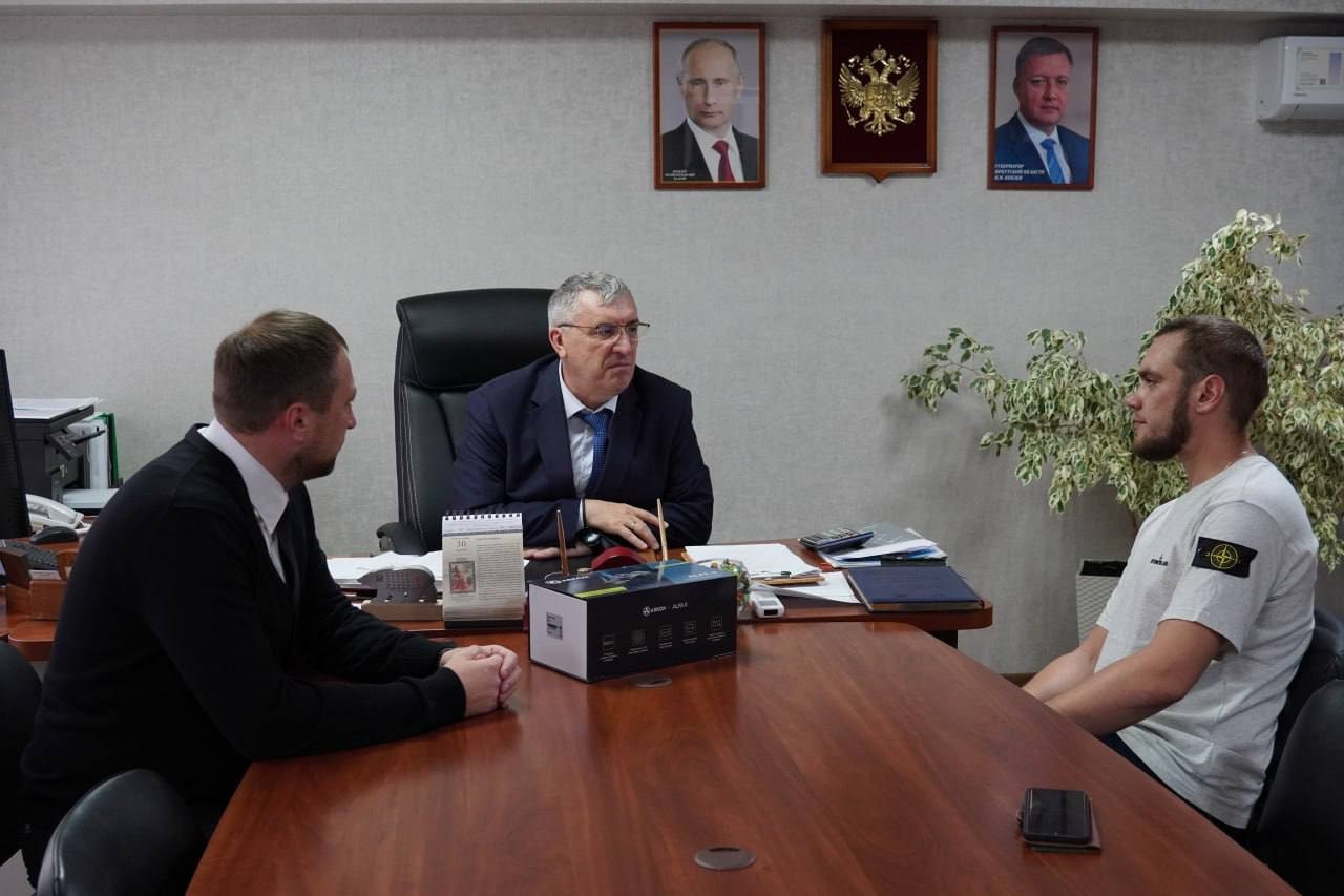 Сегодня мэр города Александр Ермаков и председатель местного парламента Евгений Каплин встретились с саянцем-участником специальной военной операции.