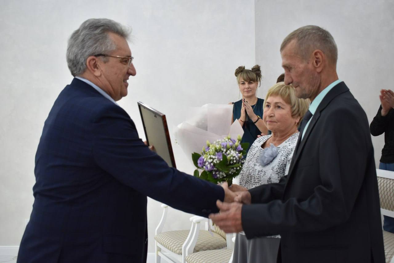 В этот торжественный день чету поздравили мэр города Александр Ермаков и председатель городского совета женщин Галина Алексеева.