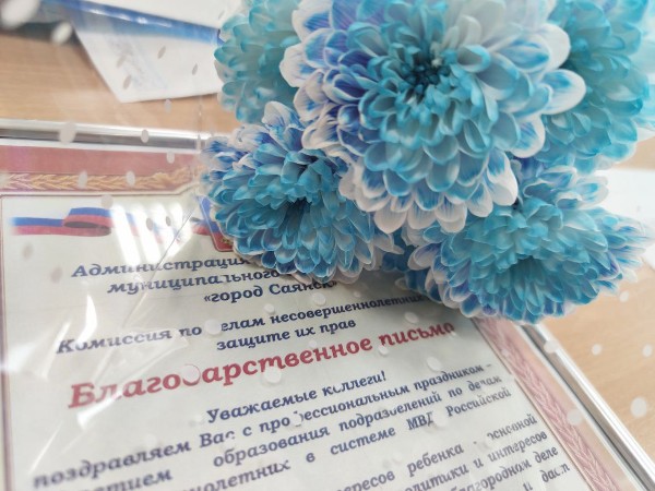 31 мая 2025 года исполняется 90 лет со дня образования подразделений по делам несовершеннолетних в системе МВД России. В мае крайнее заседание состоялось 27 мая, в связи с этим событием, председатель КДН и ЗП Наталья Гузенко поздравила и вручила благодарственное письмо коллективу инспекторов отделения по делам несовершеннолетних отдела полиции города Саянска.