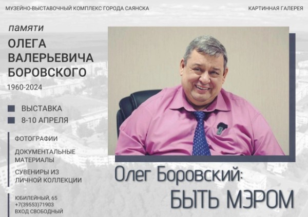 Выставка посвящена памяти мэра Саянска Олега Валерьевича Боровского.