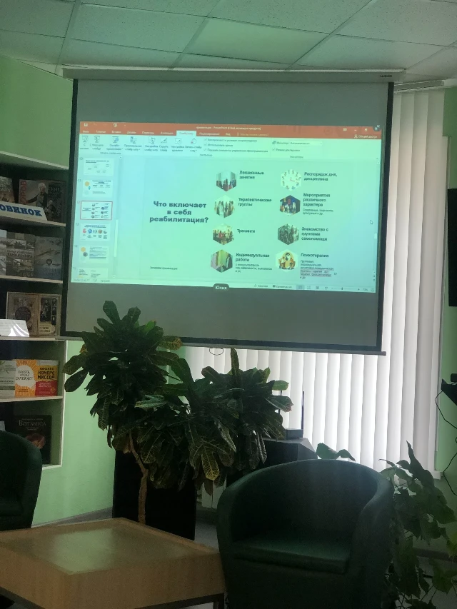 Медицинская реабилитация пациентов, страдающих алко и наркозависимостью На базе Центральной библиотеки г. Саянска комиссией по делам несовершеннолетних и защите их прав в муниципальном образовании «город Саянск» организована онлайн встреча специалиста Центра медицинской реабилитации областного государственного бюджетного учреждения здравоохранения «Иркутский областной психоневрологический диспансер» с родителями, состоящими в Банке данных семей находящихся в социально опасных условиях и имеющих зависимость. Слушатели получили информацию о первоочередных задачах реабилитации, этапах программы реабилитации, используемые методы для работы с пациентами.
