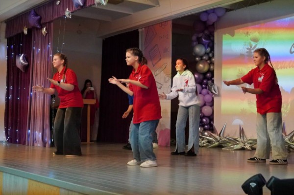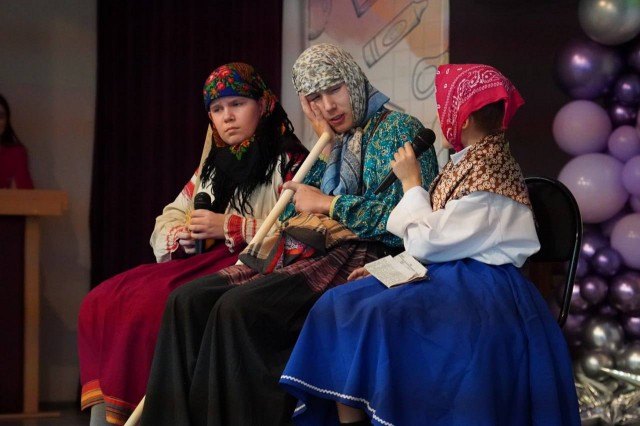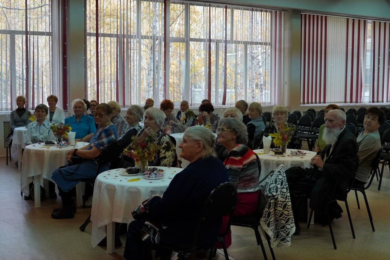 Ученики и педагоги общеобразовательного учреждения подготовили для людей серебряного возраста твооческие подарки: песни, танцы, театральные постановки.