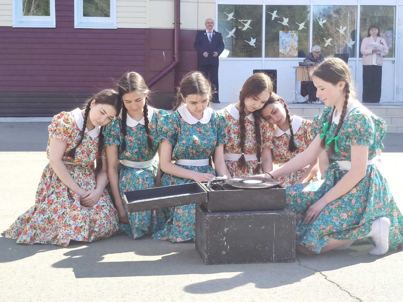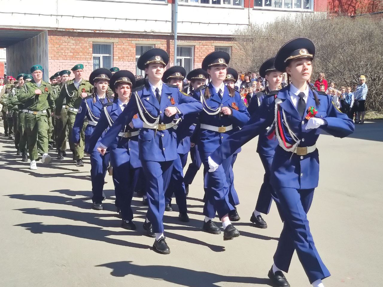 На площадку школы вышел школьный "Бессмертный полк", который возглавили сын Героя Советского Союза Дмитрия Михайловича Перова Игорь Дмитриевич, внучка Елена Игоревна и правнучка Героя Анастасия. Торжественным маршем вышли на площадь юнармейцы, школьники исполнили победный танец. Присутствующие почтили минутой молчания память Героев Великой Отечественной войны, митинг завершился возложением цветов к памятнику Героя Советского Союза Дмитрия Михайловича Перова.