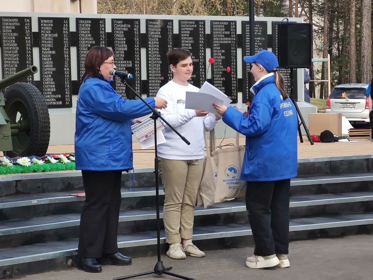 Шествие завершилось митингом в Сквере имени 40-летия Победы, где исполняющий обязанности мэра города Саянска Александр Ермаков выступил с приветственным словом и принял участие в награждении самых активных участников Движения Первых, Юнармии и волонтеров Саянского отделения общественной организации «Волонтеры Победы». Также на мероприятии были награждены победители и призеры военно-патриотической игры "Зарница 2.0".