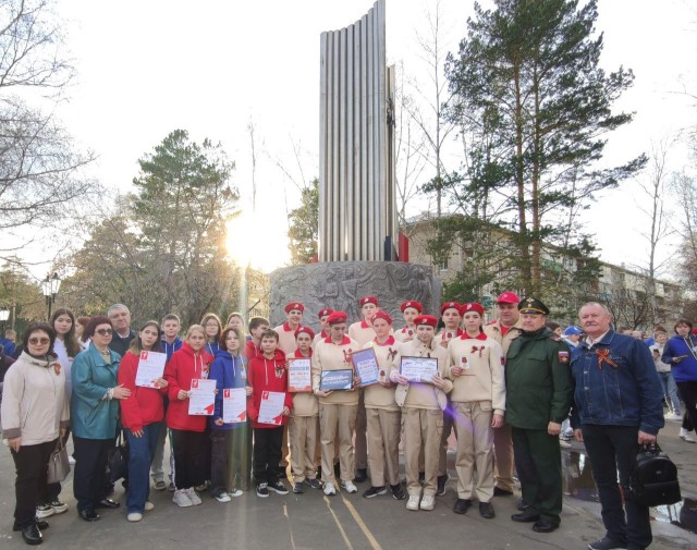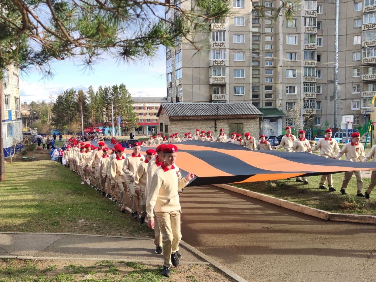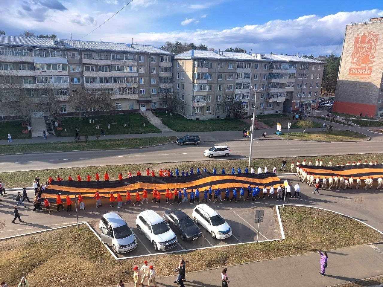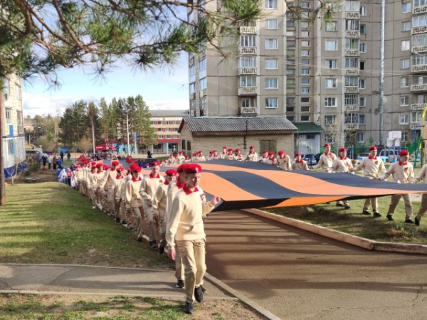 Накануне Дня Победы, Саянские юнармейцы и участники Движения Первых в дань памяти Подвига великого народа, от сквера Первостроителей до сквера имени 40-летия Победы пронесли по городу 60-метровую «Георгиевскую ленту».