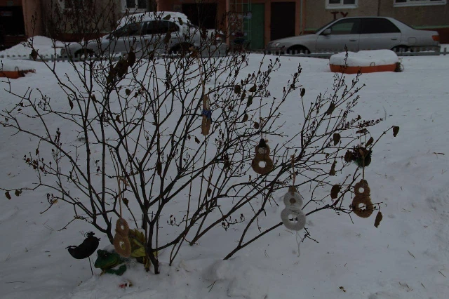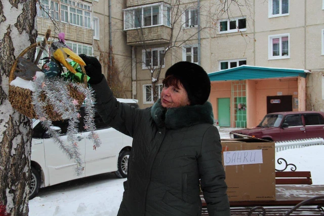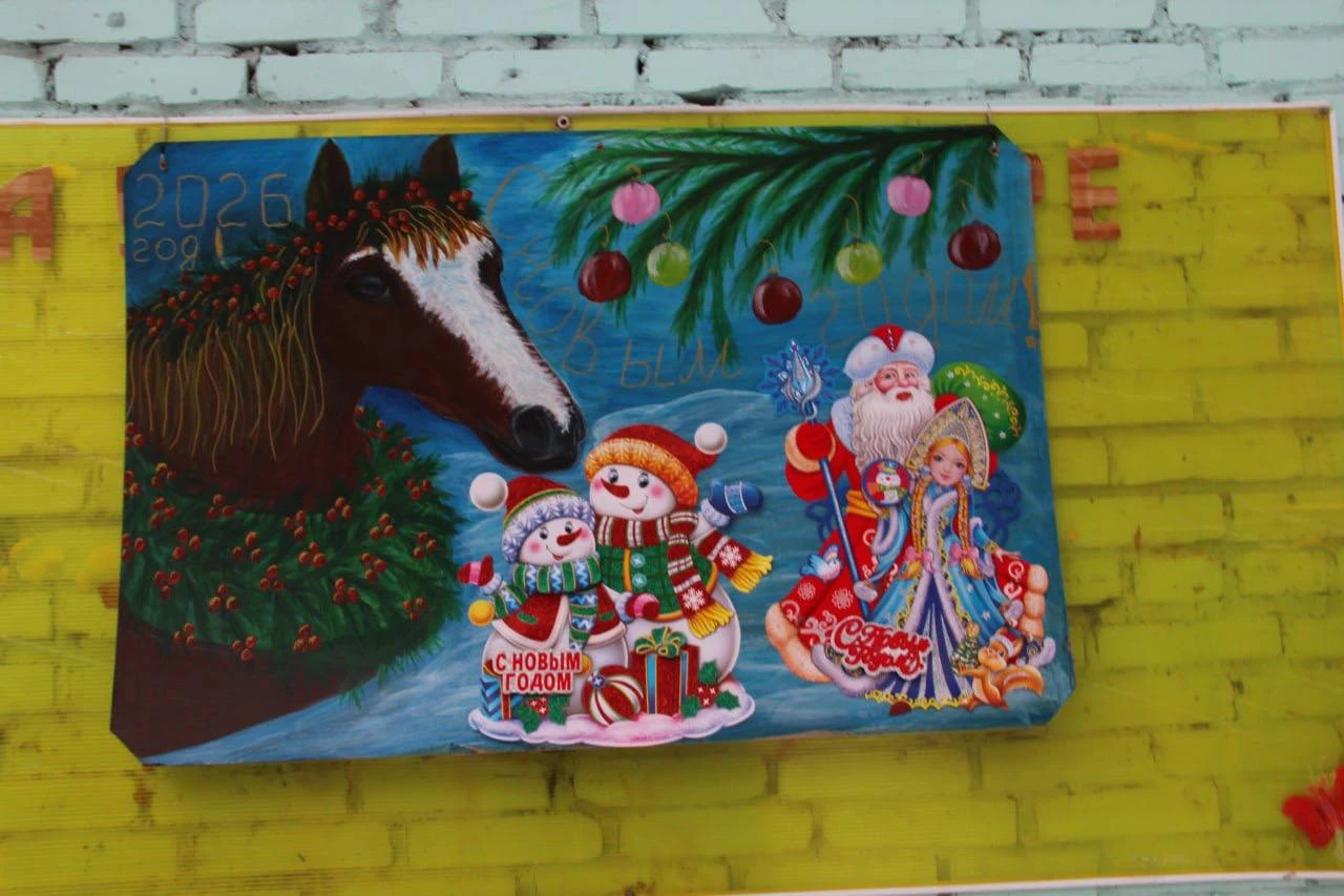Жители дома №7 в микрорайоне Строителей создали в своём дворе праздничную атмосферу. Нарядив ёлку, они добавили и другие украшения, среди которых — фигура символа наступающего года.