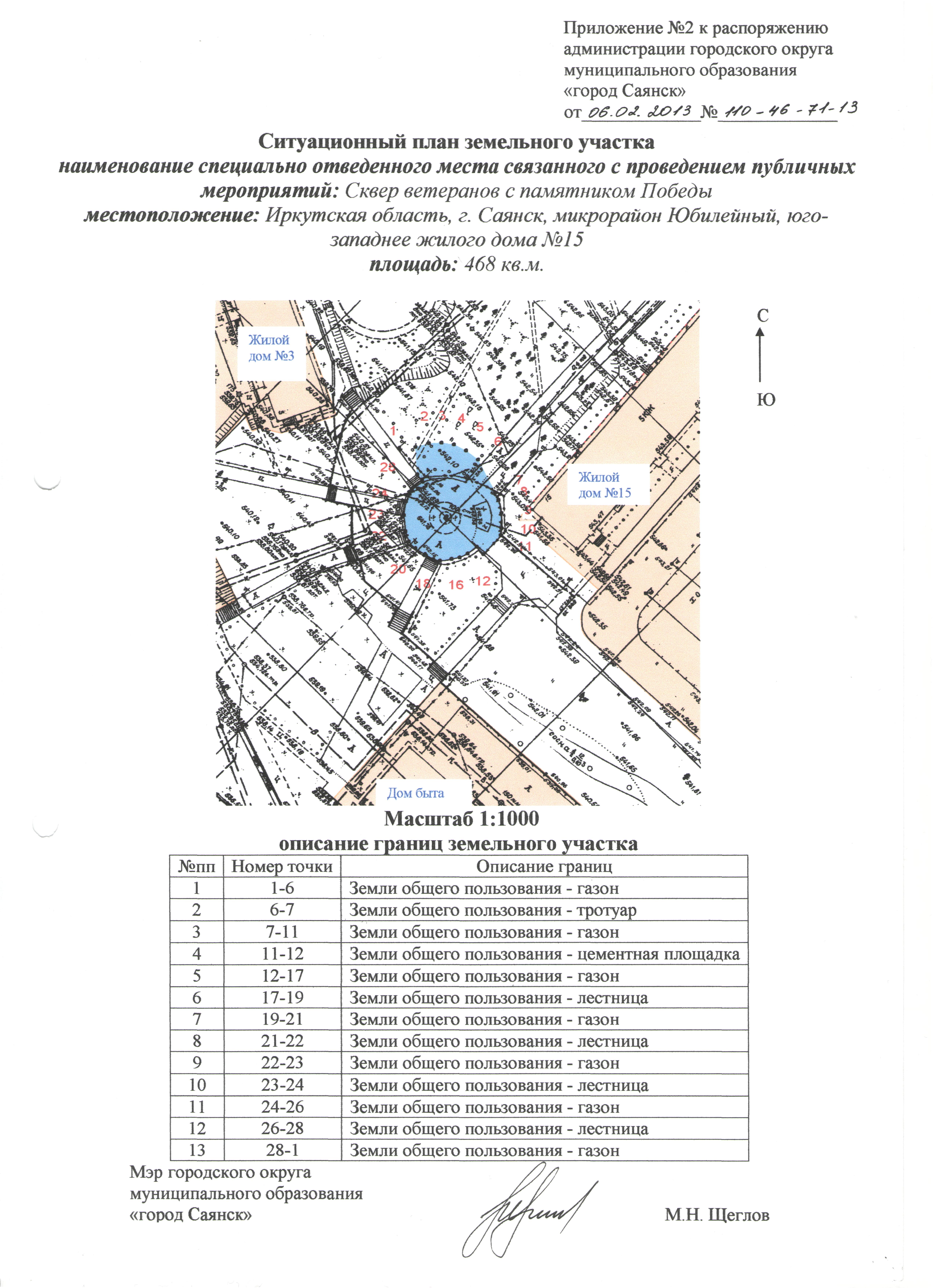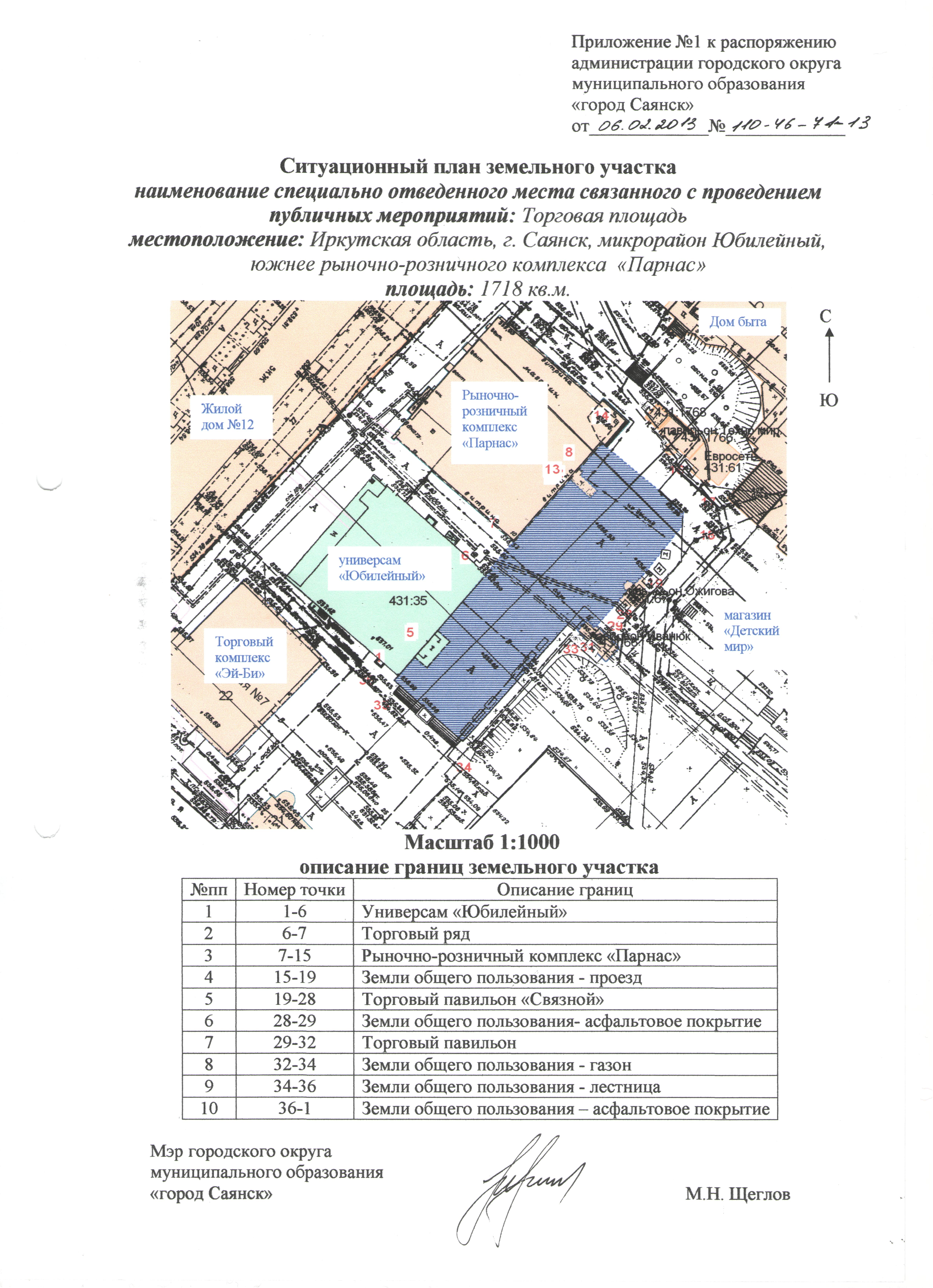 Распоряжение от 06.02.2013 № 110-46-71-13 "Об утверждении ситуационных планов земельных участков специально отведенных мест для проведения публичных мероприятий на территории города Саянска"
