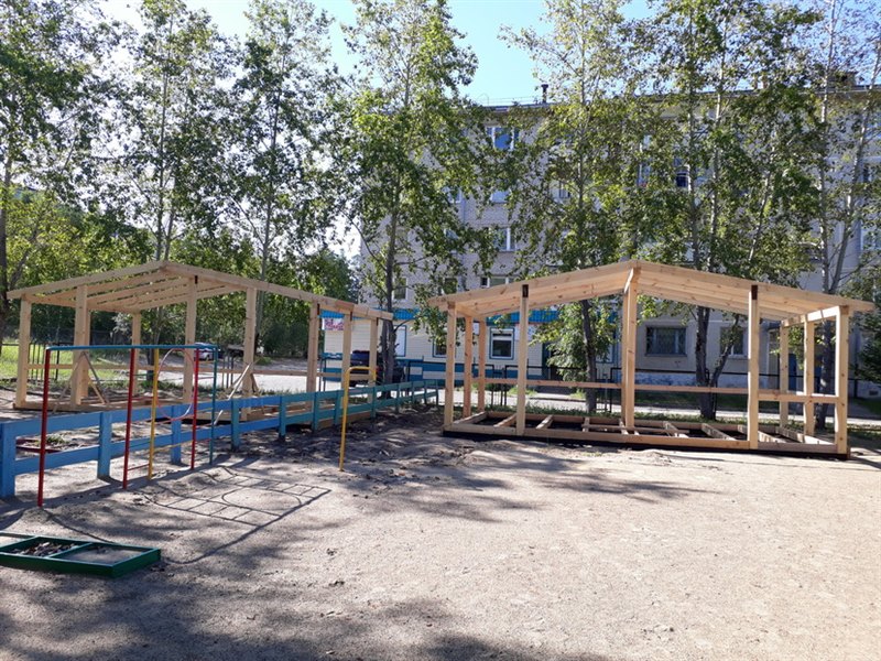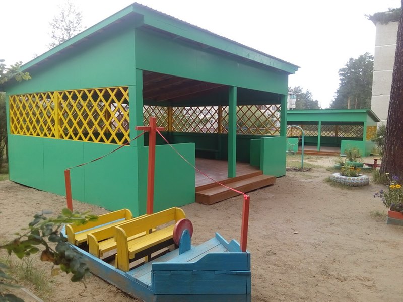 | Устройство теневых навесов в детском саду№35 «Радуга» (2 шт.), мкр. Октябрьский, д. 35 |