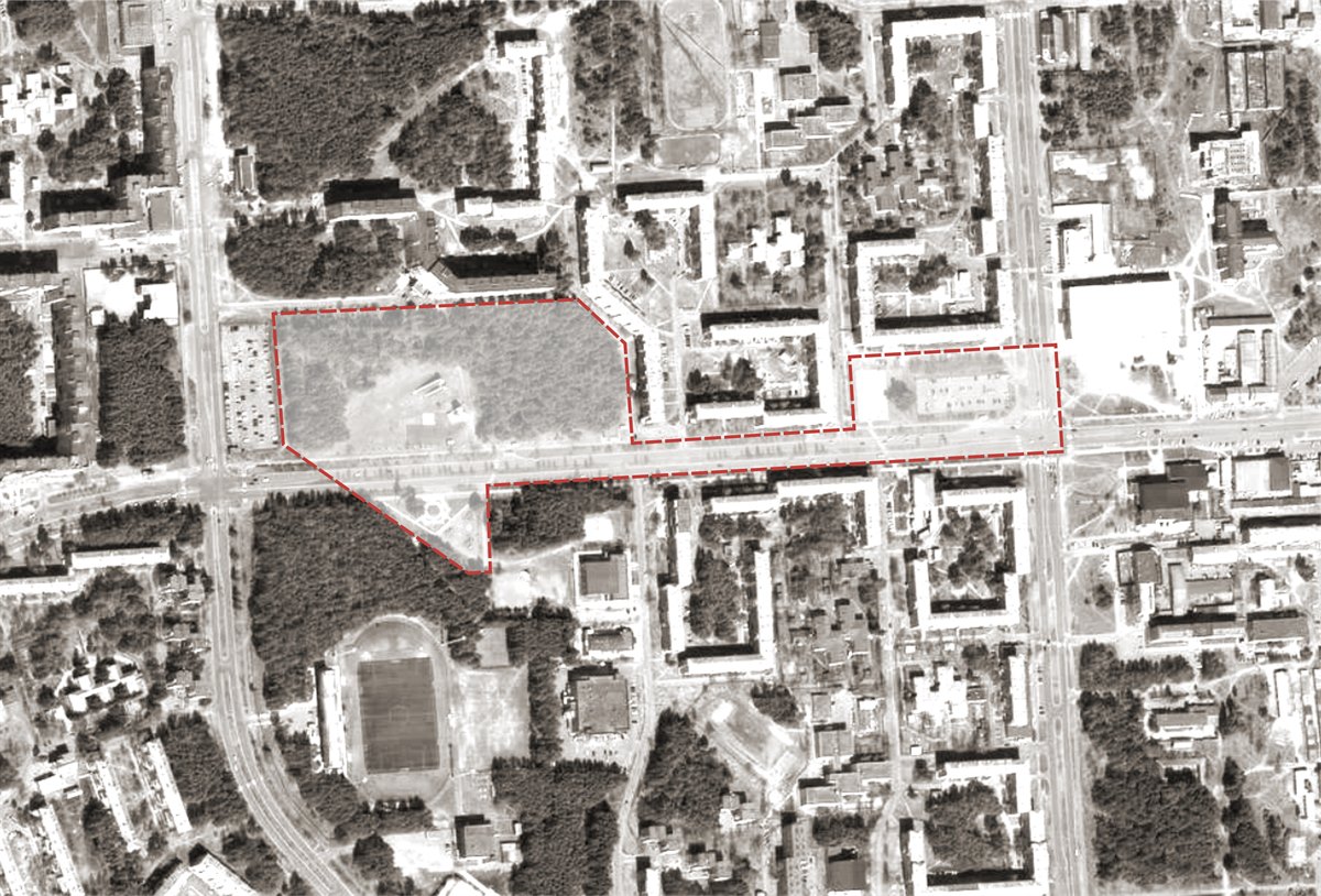 Планируемый участок для благоустройства: от улицы Советской Армии, включая свободную территорию перед торговым комплексом «Скиф», свободную территорию перед домом №14 микрорайона Строителей, территорию Снежного городка. Предлагается выполнить комплексное благоустройство с устройством парка аттракционов.
