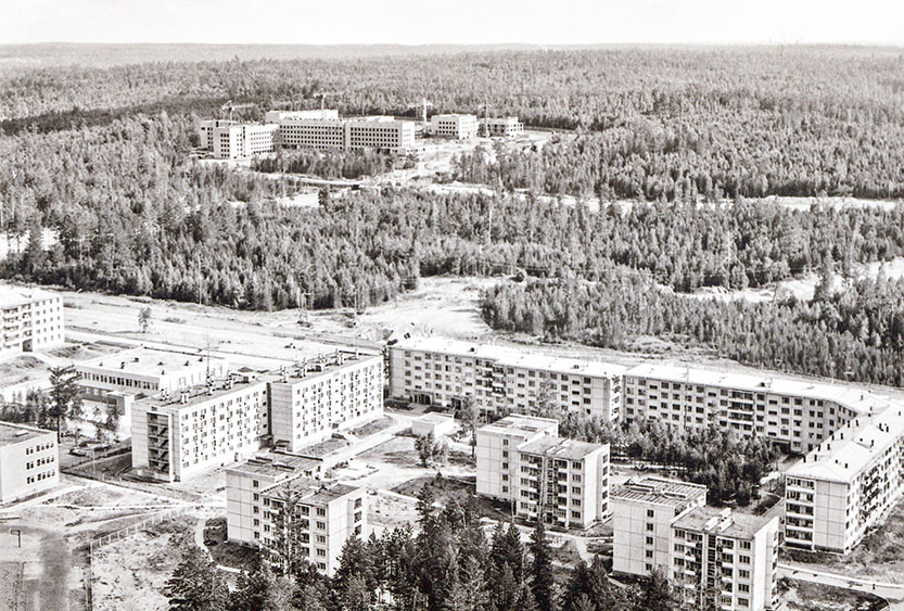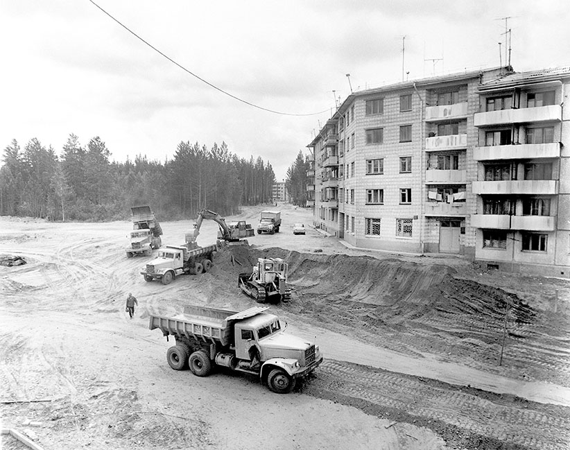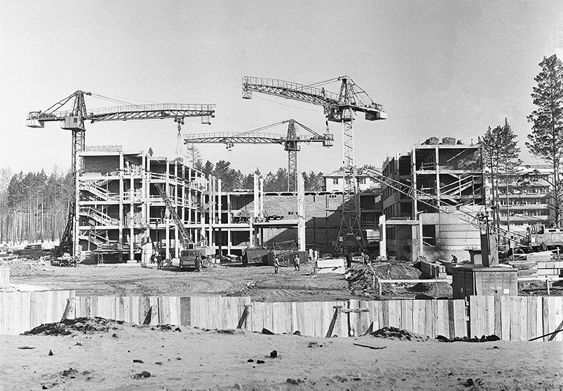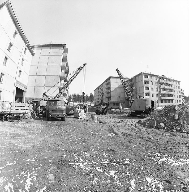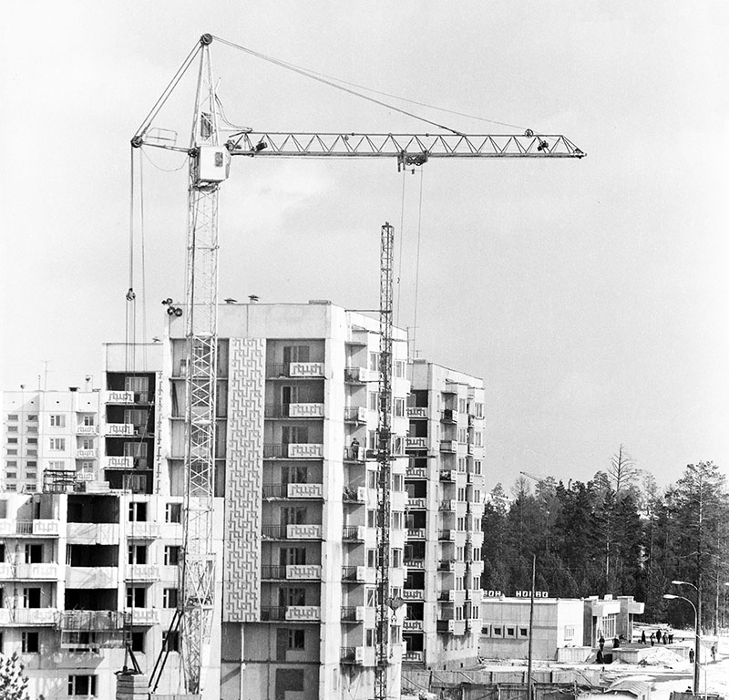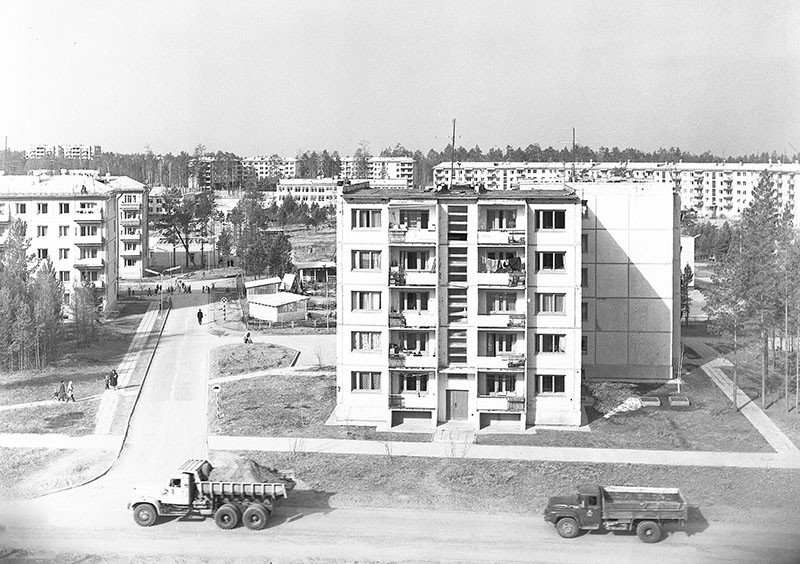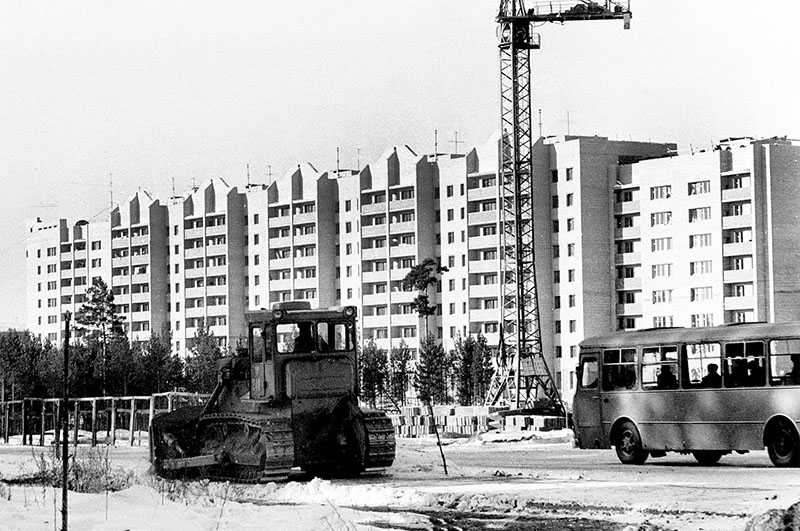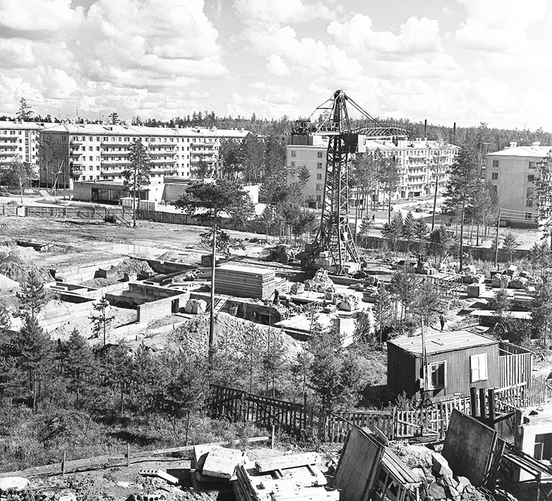 Строительство первого микрорайона. первые дома, первый детский сад,