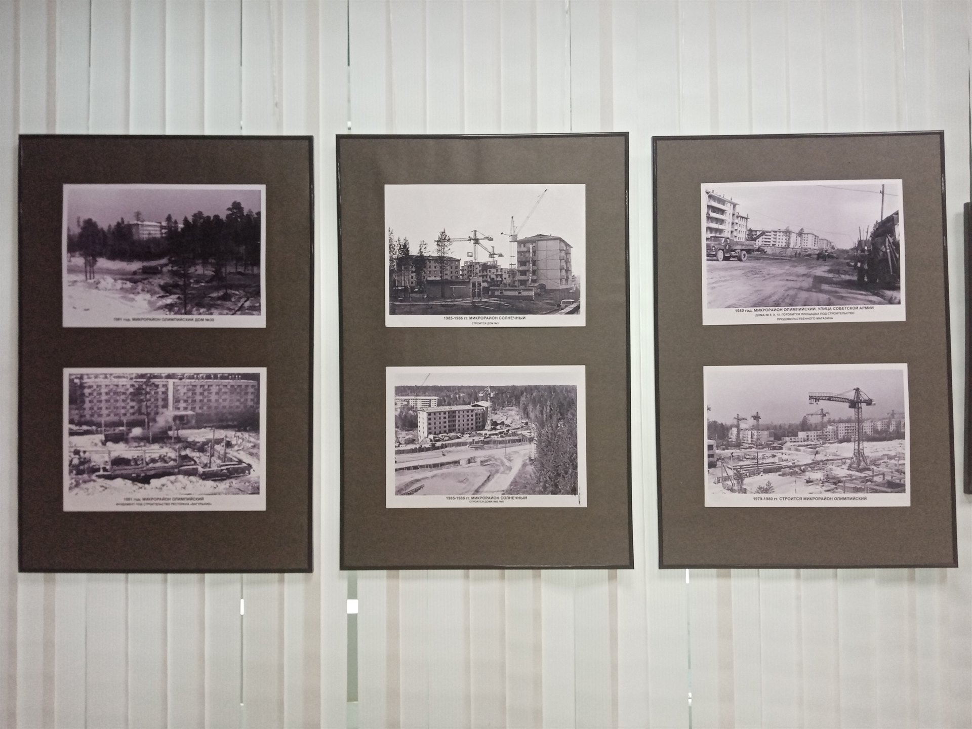 Некоторые фотографии, представленные на выставке уникальны, их никто не видел ранее. Например, снимок, датированный 1973 годом. На нем запечатлен начальный этап строительства города: коробки домов № 1, 2, 3 и фундамент 4-го дома, в первом микрорайоне Нового города. Невдалеке виднеется здание первого детского сада, а вокруг – нетронутая тайга.