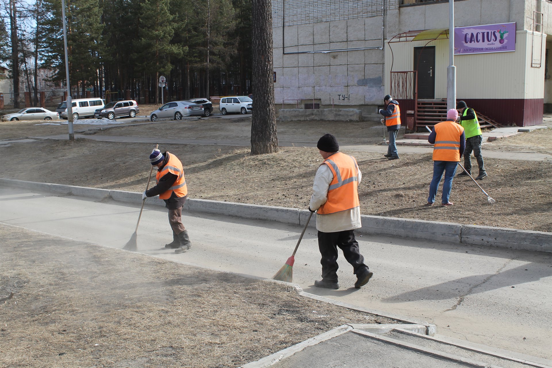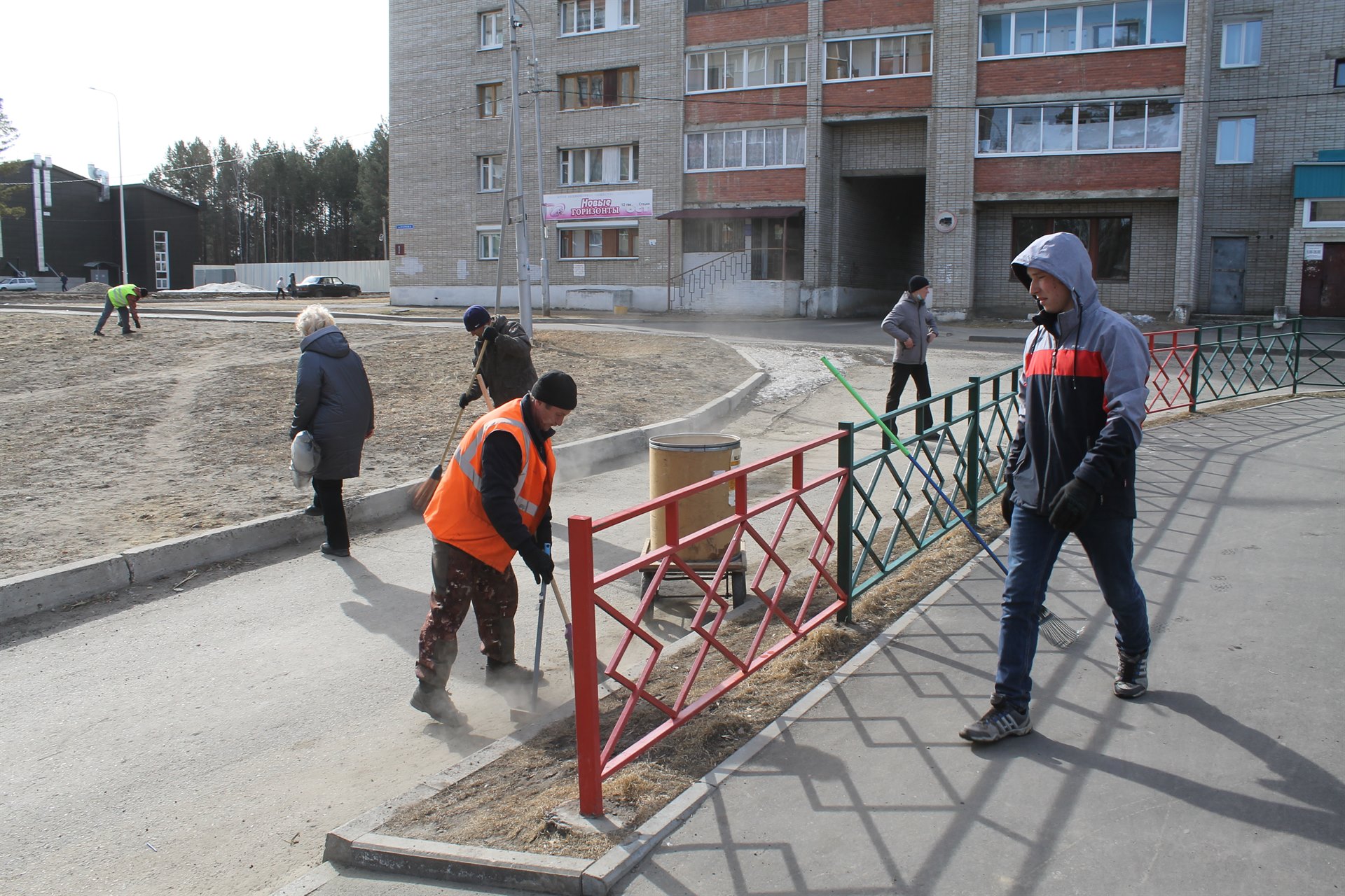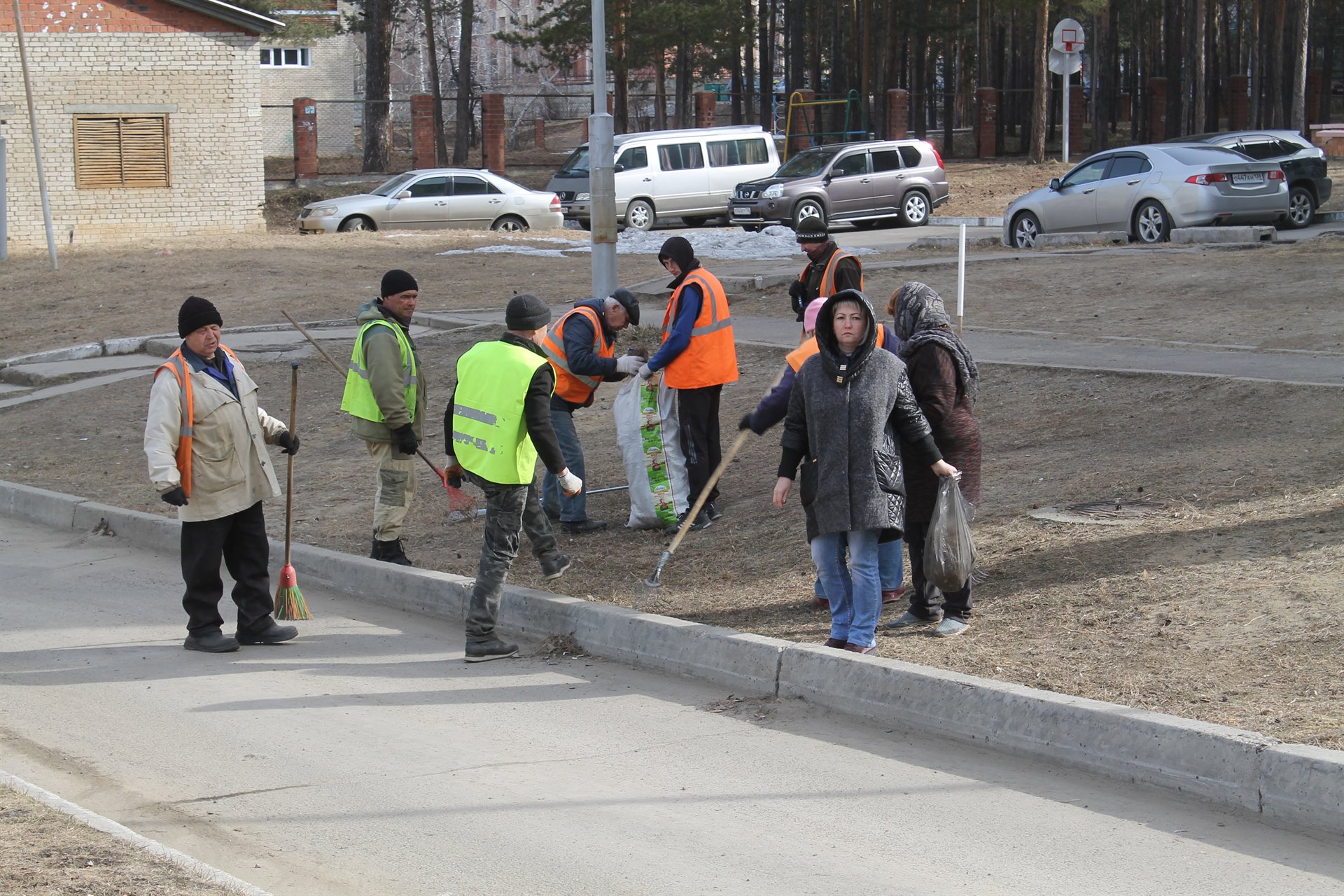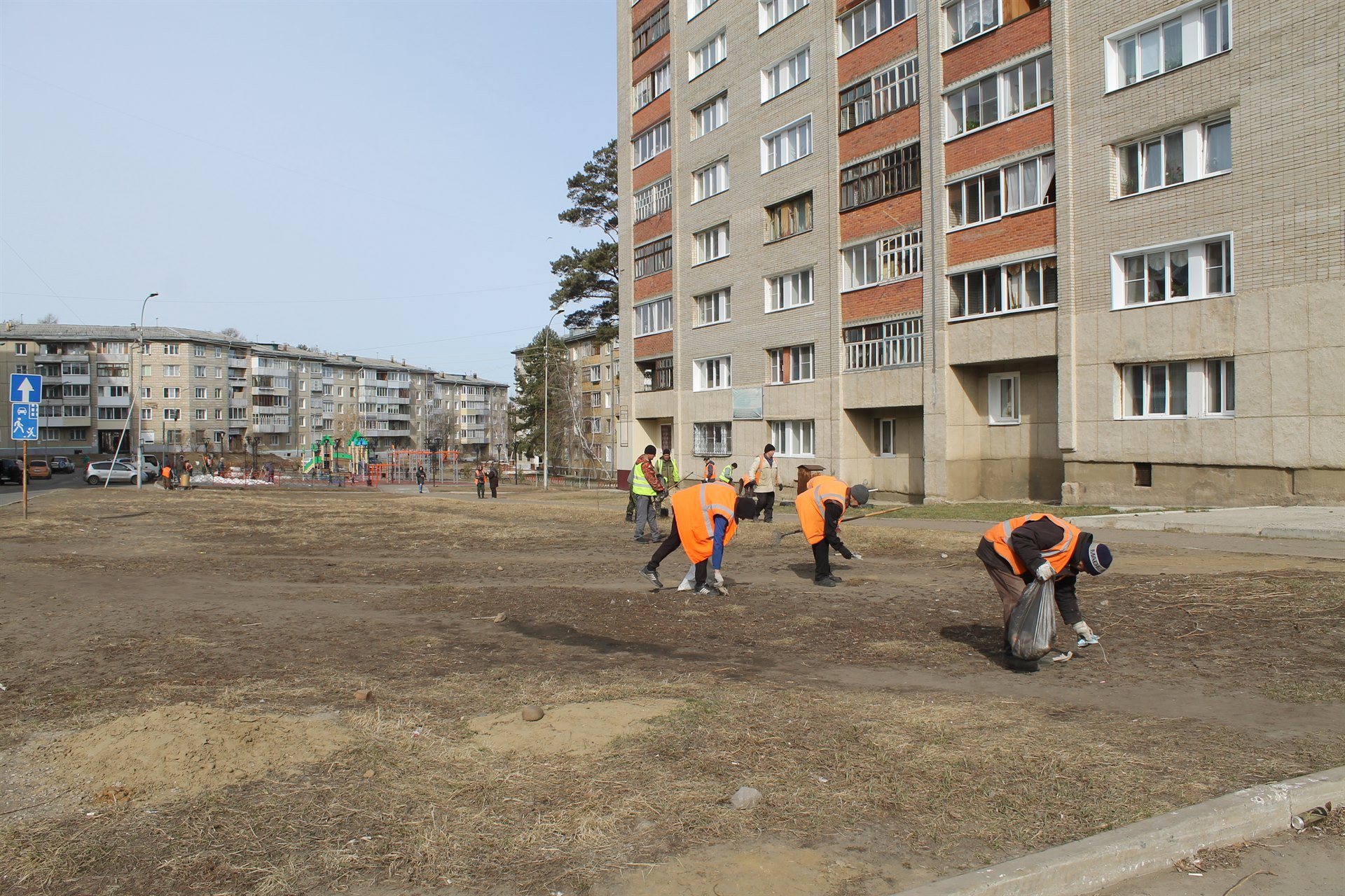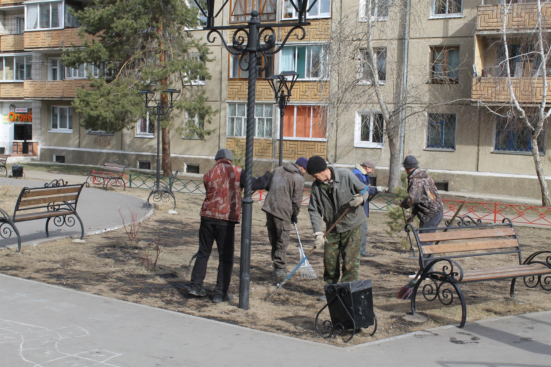 Тридцать человек были задействованы в уборке территории от мусора, расчистке газонов от прошлогодней травы.