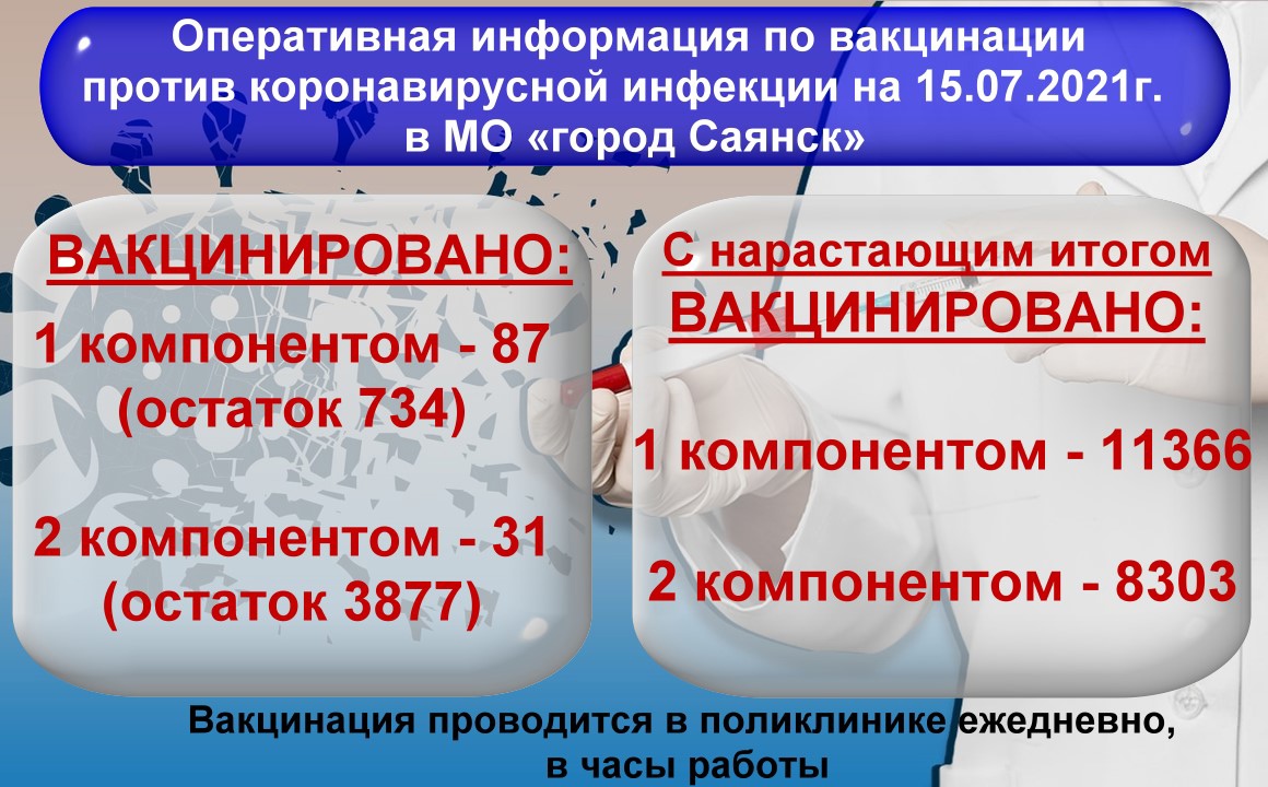 Оперативная информация по вакцинации против коронавирусной инфекции на 15.07.2021г.
